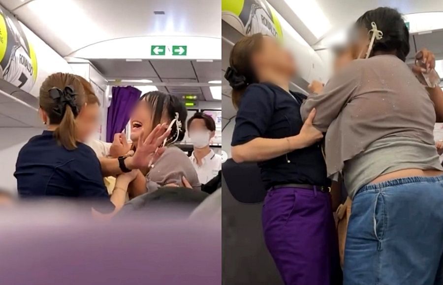 이 과정에서 승무원 3명이 제지에 나섰고, 몸싸움이 벌어졌다. 현장에 있던 다른 승객이 촬영한 영상에는 A씨가 좁은 통로에서 소리를 지르고 제지당하는 장면이 담겼다.