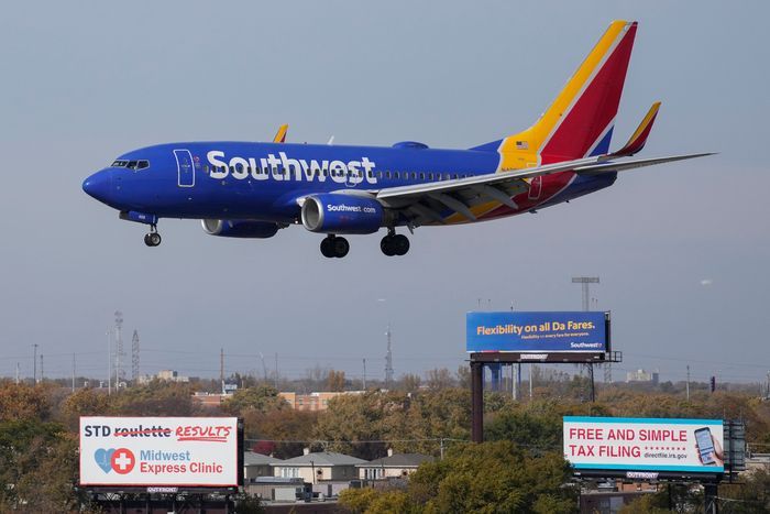 사우스웨스트 항공 비행기가 11월 6일 목요일 시카고 미드웨이 국제공항에 착륙하고 있다. AP연합뉴스