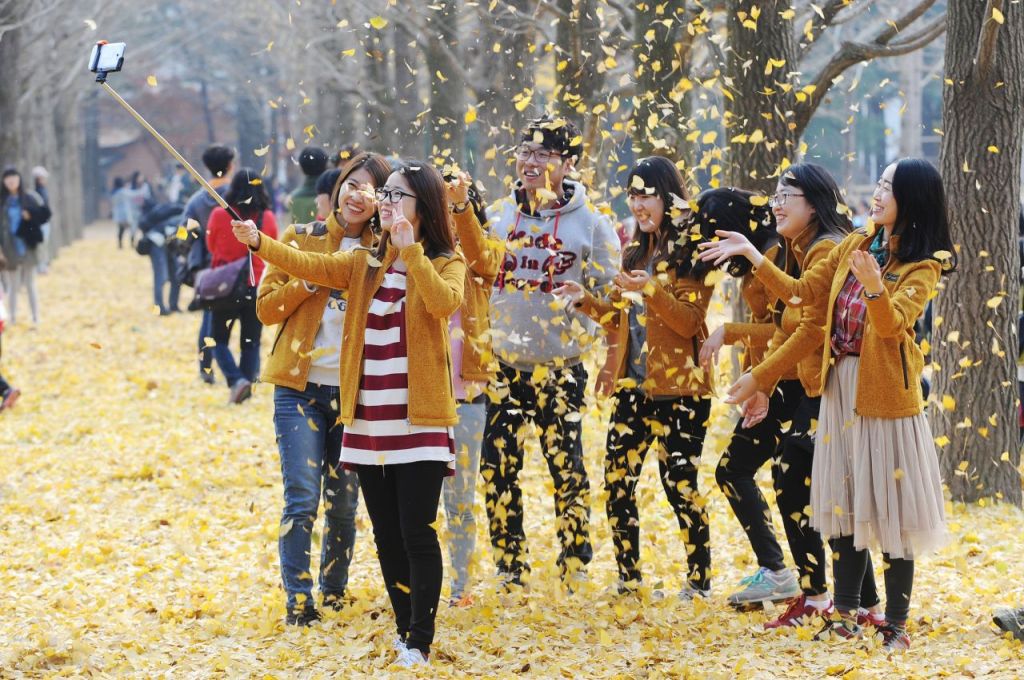 남이섬 ‘송파은행나무길’을 즐기는 관광객들 모습. 송파구 제공.