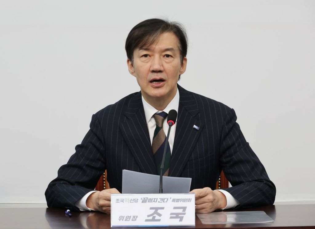 조국 전 조국혁신당 비상대책위원장이 8일 한동훈 전 국민의힘 대표가 주장한 '검찰 자살' 발언에 대해 강하게 반박했다. 연합뉴스