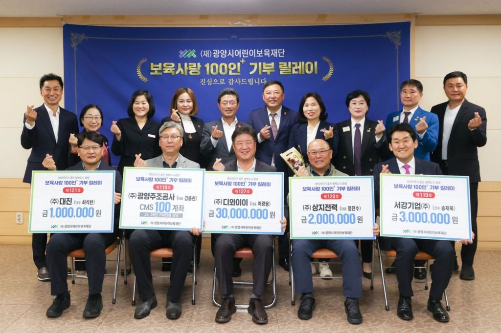(재)광양시어린이보육재단(이하 재단)은 지난 7일 광양시청 만남실에서 정인화 광양시장, 이광용 이사장, 기탁자 등 20여 명이 참석한 가운데 보육사랑 100인+ 기부 릴레이 후원금 기탁식을 개최했다.