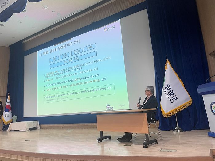 전남 영암군은 지난 7일 군청에서 김용익 돌봄과미래재단 이사장을 초청해 '돌봄이 바꿀 미래, 우리의 역할'을 주제로 특강을 열었다.