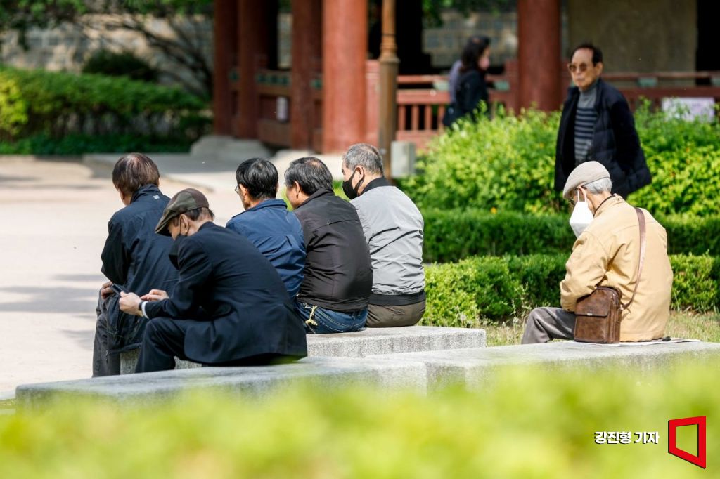 서울 종로구 탑골공원에서 장년 남성들이 삼삼오오 모여 있다.