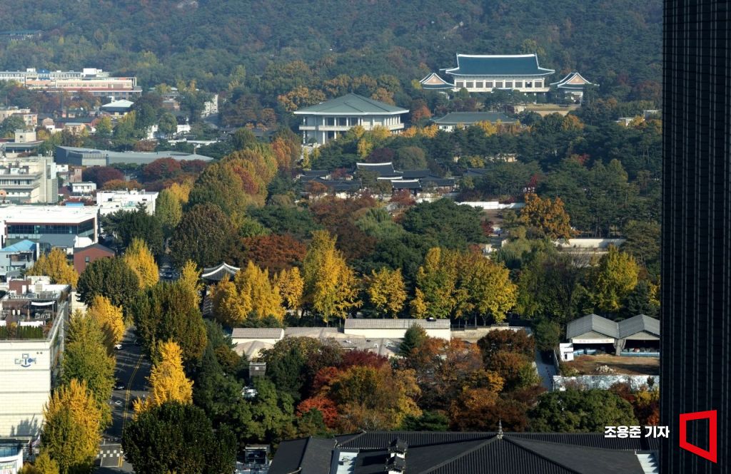 입동인 7일 서울 외교부 청사에서 바라본 청와대 일대 단풍이 절정을 이루고 있다. 용산 대통령실의 청와대 이전이 임박한 것으로 보도되고 있다. 2025.11.7 조용준 기자