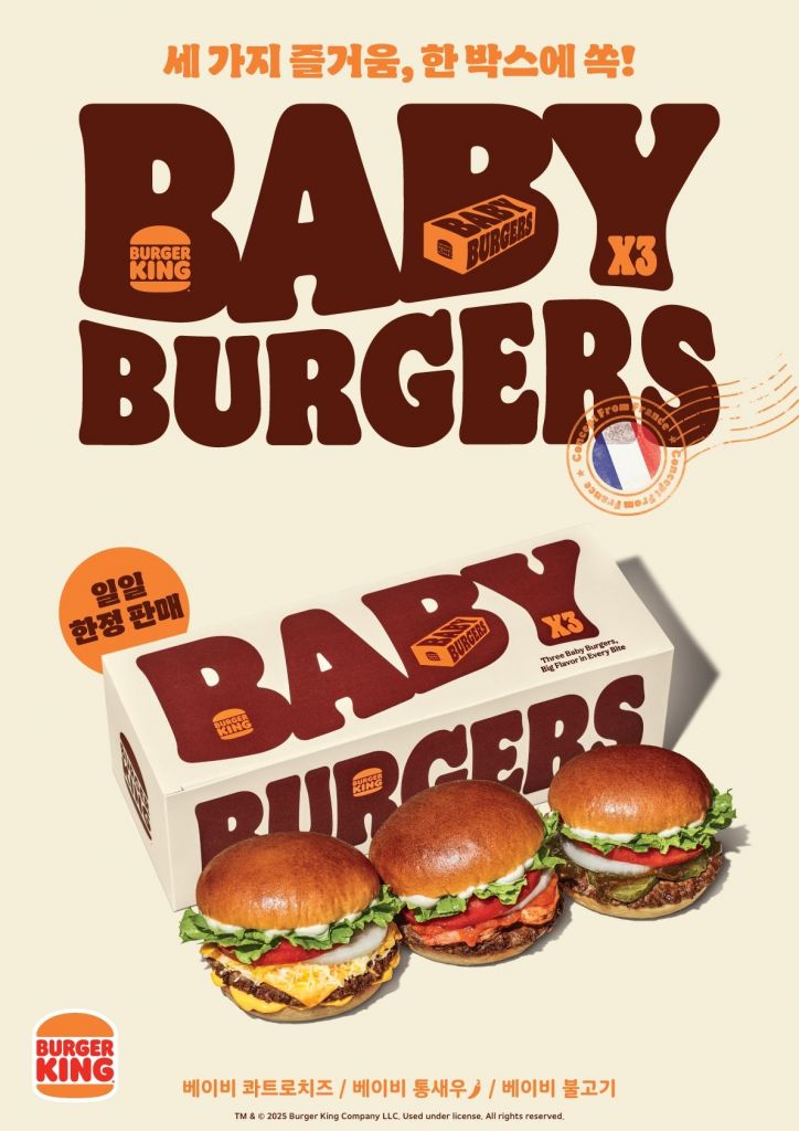 버거킹 관계자는 "이번 신제품 '베이비버거'는 세 가지 서로 다른 맛을 한 번에 즐기는 재미와 함께 가족이나 친구들과 나눠 먹으며 소통하는 '함께하는 즐거움'을 전달하고자 준비했다"면서 "앞으로도 다양한 고객분들이 함께 즐길 수 있는 다채로운 구성의 선택지 제공을 통해 고객 접점을 확대해 나갈 예정"이라고 말했다.
