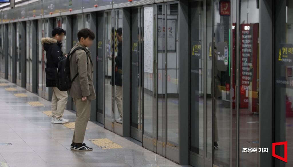서울 5호선 광화문역에서 시민들이 지하철을 기다리고 있다. 조용준 기자