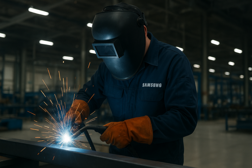 삼성전자가 텍사스주 테일러시에 구축 중인 파운드리 생산라인 공사에서 현지 용접공에게 하루 최대 480달러(약 70만원)를 지급했다. 챗GPT 생성이미지