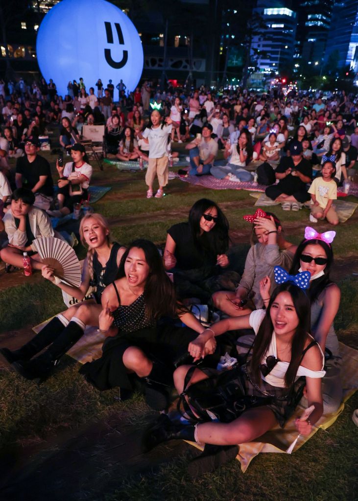 지난 9월 14일 서울 중구 서울광장에서 열린 2025 서울헌터스 페스티벌에서 외국인 관광객들이 넷플릭스 애니메이션 '케이팝 데몬 헌터스' 수록곡 '골든'을 부르는 모습으로, 기사 이해를 돕기 위한 사진. 연합뉴스