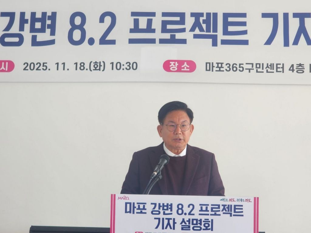 박강수 마포구청장은 18일 당인동 마포365구민센터에서 기자간담회를 열고 “마포강변8.2프로젝트는 한강을 중심으로 마포의 도시 구조를 재편해 새로운 도시 비전을 실현하는 대전환의 시작”이라며 “마포구는 한강과 도심이 경계 없이 이어지는 ‘바운드리스(boundless) 마포’를 만들고 지속가능한 도시발전이 이루어질 수 있도록 최선을 다하겠다”고 밝혔다.