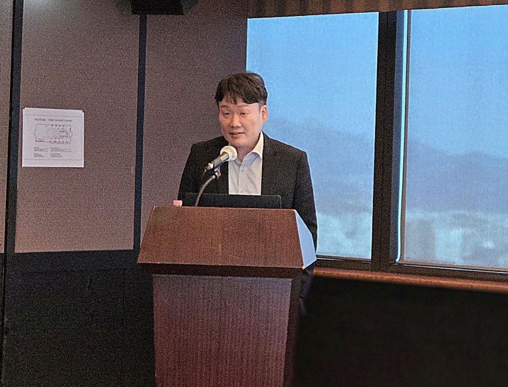 허남구 에임드바이오 대표가 18일 서울 여의도 63빌딩에서 열린 기자간담회에서 파이프라인 경쟁력에 대해 설명하고 있다. 정동훈 기자