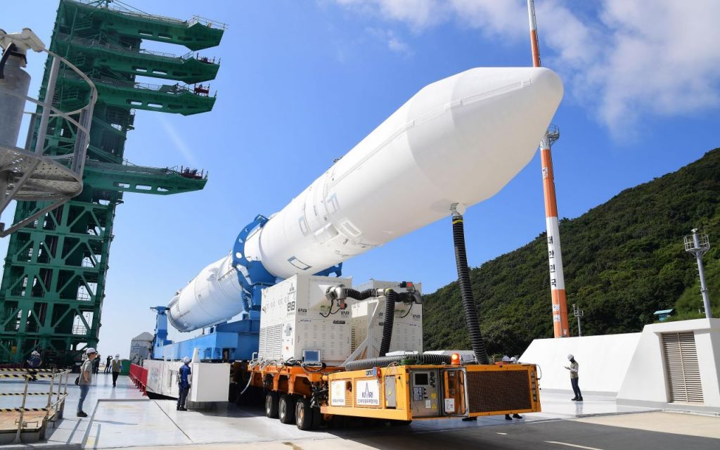 발사대로 옮겨지는 누리호. 연합뉴스 제공