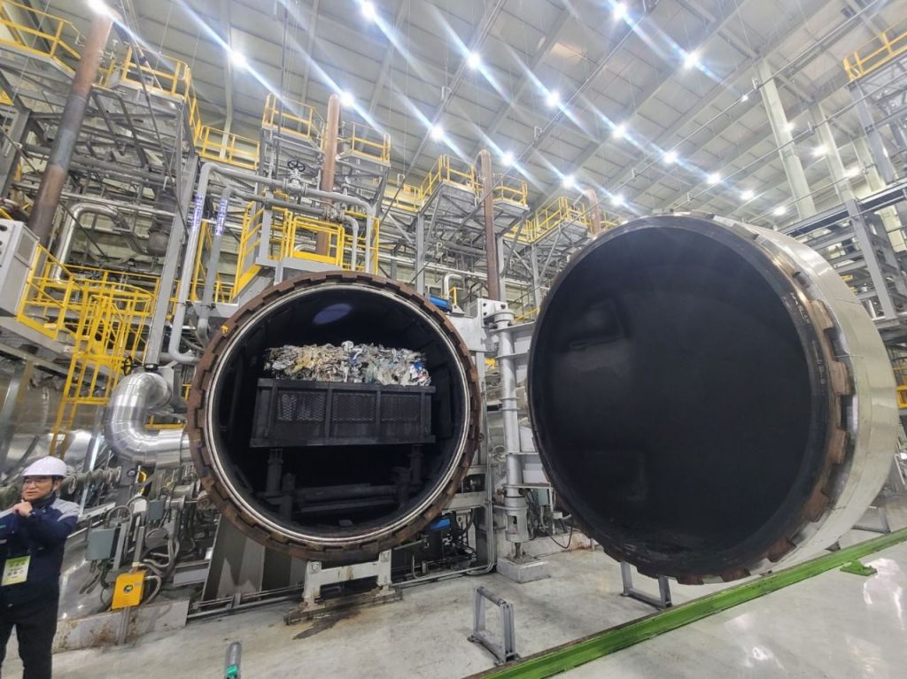 도시유전 웨이브정읍 공장에 있는 비연소 저온 열분해 장비 안에 폐비닐이 들어 있는 모습. 강희종기자