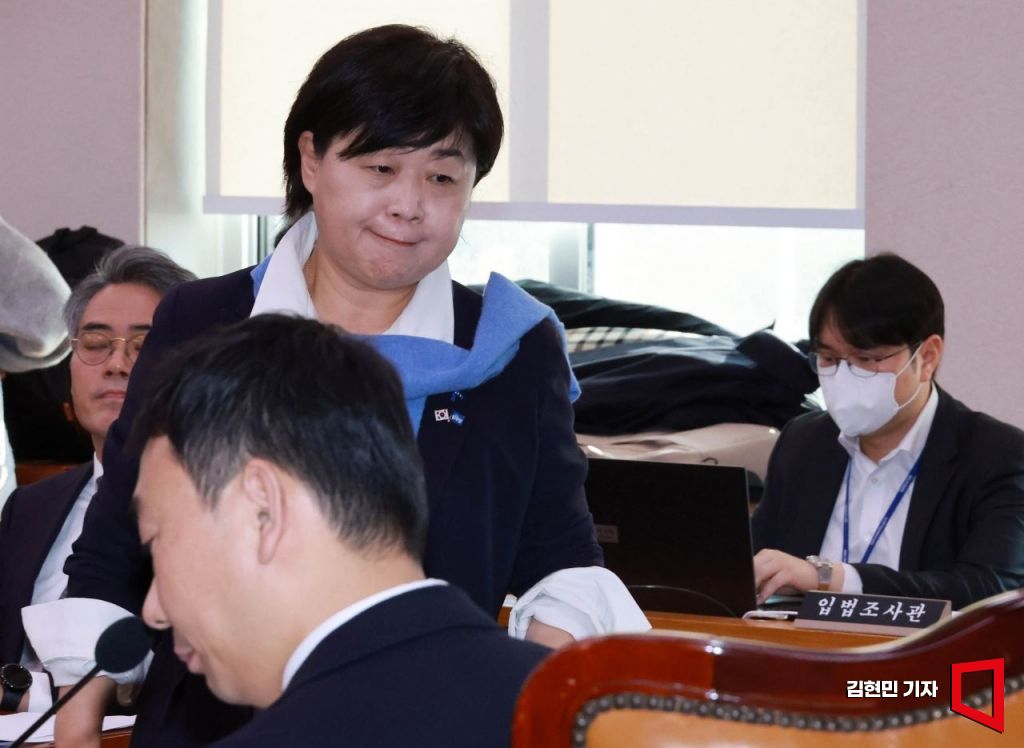 서영교 더불어민주당 의원이 19일 국회에서 열린 법제사법위원회 법안심사소위원회에서 나서고 있다. 서 의원은 이날 법사위 법안심사 도중 취재진 앞에 나와 "담당 직능단체 대한변협과 만났고, 쿠팡 관계자와 만나지 않았다"며 "마치 쿠팡 관계자와 의도적으로 만난 것처럼 쓰여진 문자 관련해서는 법적 조치를 검토하겠다"고 말했다.