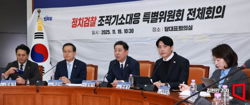 김병기 더불어민주당 원내대표가 19일 국회에서 열린 정치검찰 조작기소대응특위 전체회의에서 발언하고 있다.