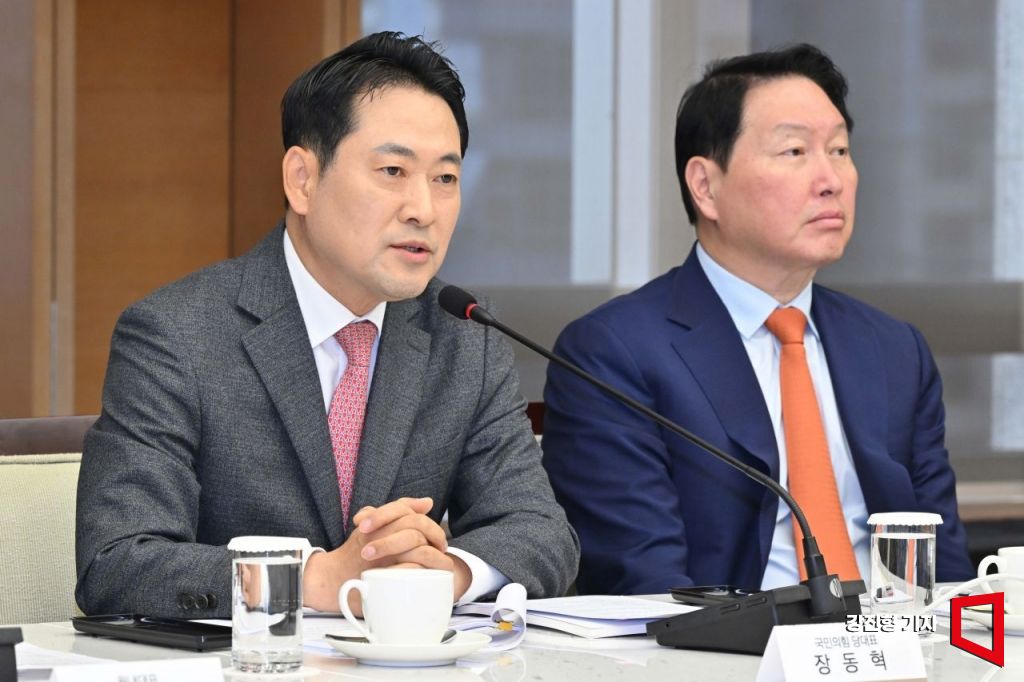 장동혁 국민의힘 대표가 19일 서울 중구 대한상의에서 열린 정책 간담회에서 모두발언 하고 있다.