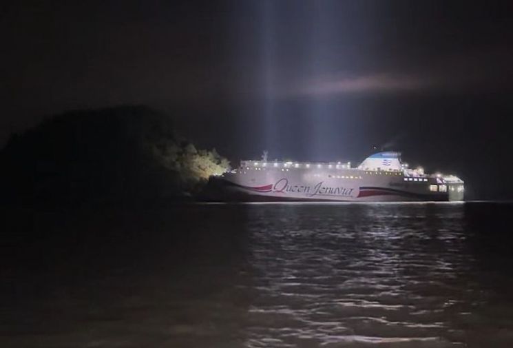 19일 전남도 등에 따르면 이날 오후 8시17분께 2만6,546t급 여객선 퀸제누비아2호가 전남 신안군 장산면 장산도 인근 해상서 좌초됐다는 신고가 해경에 접수됐다.