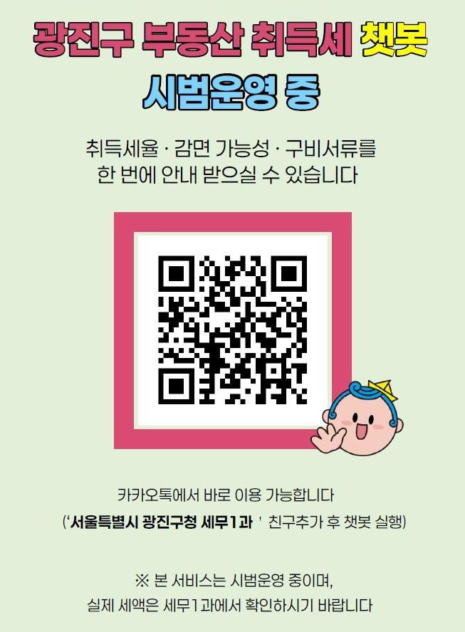 ‘부동산 취득세 안내 채팅로봇’ 홍보 안내문. 광진구 제공.