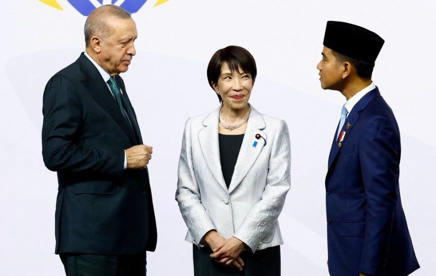 22일(현지시각) 남아프리카공화국 요하네스버그에서 열린 주요20개(G20) 정상회의에 참석한 다카이치 사나에 일본 총리(가운데). 로이터 연합뉴스