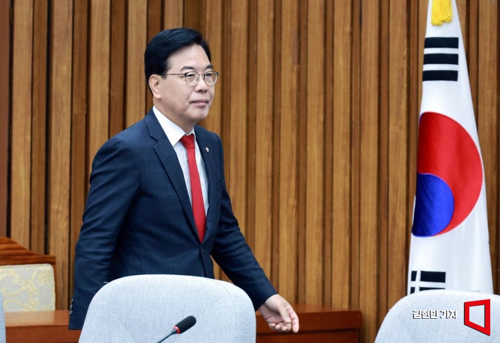 송언석 국민의힘 원내대표가 21일 국회에서 열린 원내대책회의에 참석하고 있다. 2025.11.21 김현민 기자