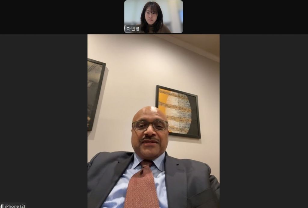 시바쿠마르 선임연구원이 화상 인터뷰에서 발언하고 있다. 차민영 기자