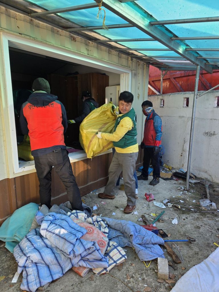 첫째 날에는 전국민주연합노동조합 화순지부 조합원인 환경미화원 10여 명이 참여해 중장비 집게차와 청소차 2대를 투입, 주거 내부와 외부에 쌓여 있던 폐기물을 처리했다.
