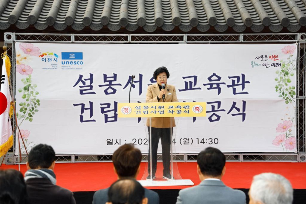 24일 설봉서원 교육관 착공식에서 김경희 이천시장이 인사말을 하고 있다. 교육관은 내년 12월 준공 예정이다. 이천시 제공