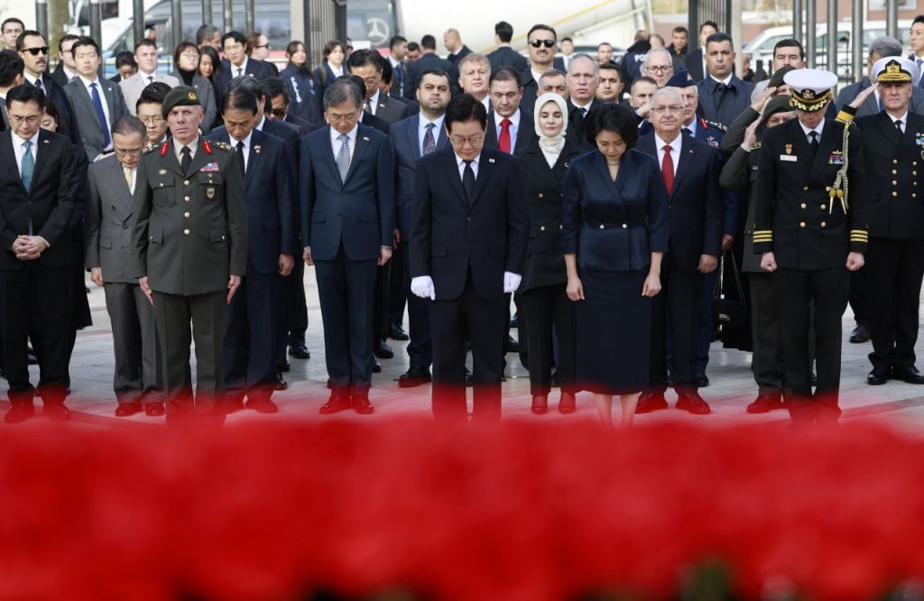 이어 이 대통령은 진혼곡 연주에 맞춰 묵념하고 참석자들과 함께 애국가를 제창했다. 튀르키예는 한국 전쟁 당시 16개 유엔 참전국 중 4번째로 많은 병력을 파병해 '형제의 나라'로 불린다.