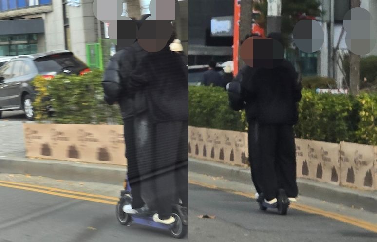 이를 본 누리꾼은 "도로 위 흉기 제발 없어지길", "면허증 확인하고 헬멧 착용하고 1인 이상 탑승 시 운행이 안 되게 해야 한다", "왜 운전면허증 인증은 모바일 신분증을 적용 안 하고 인증 없이 타게 두는 거냐", "다치면 역으로 당하니 단속도 쉽지 않다는 게 문제다" 등 반응을 보였다.