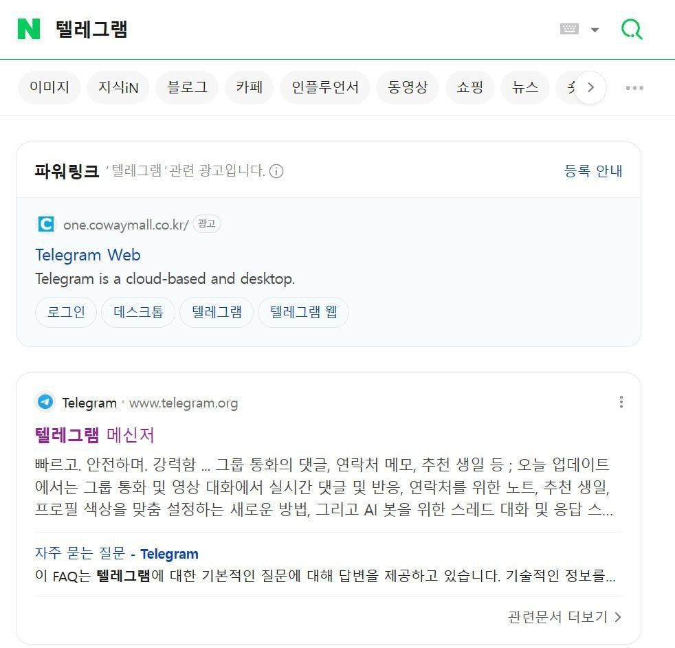 네이버 검색 광고인 '파워링크'로 텔레그램을 내려받았더니 해당 앱에서 악성코드가 발견되면서 이용자 주의가 요구된다.
