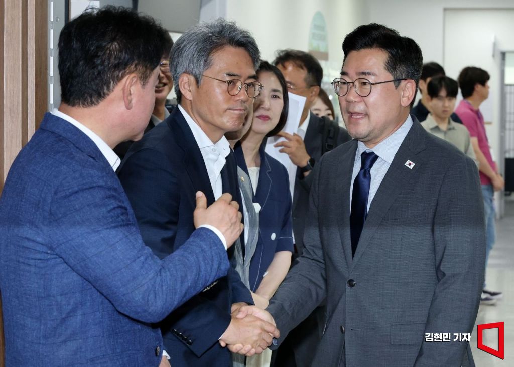 지난 7월 25일 박찬대 더불어민주당 의원이 기자회견을 위해 국회 소통관으로 들어서고 있다. 김현민 기자
