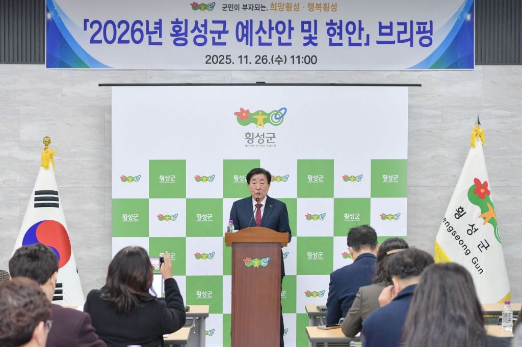강원도 횡성군은 26일 횡성군청 대회의실에서 기자브리핑을 열고 내년도 예산편성 방향과 핵심과제 등 군정 중점 추진 사항을 공유했다.