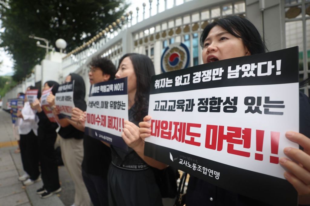 그러면서 "교육부는 미이수제 및 최소성취수준 보장지도 폐지, 진로선택과목과 융합선택과목 등 일정 과목의 절대평가로의 평가 방식 전환 등 학생의 학습권과 교사의 교육권이 실질적으로 보장될 수 있는 방향으로 전면 재검토하기를 강력히 촉구한다"면서 "교원 3단체는 고교학점제가 전면 재검토되기를 요구한다"고 강조했다.