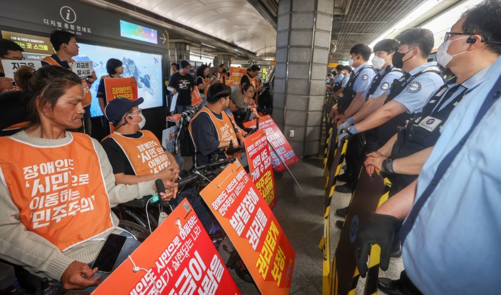 전장연은 국회로 넘어간 2026년 정부 예산안에 장애인 권리예산이 반영되지 않았다는 이유로 시위를 벌이고 있다.