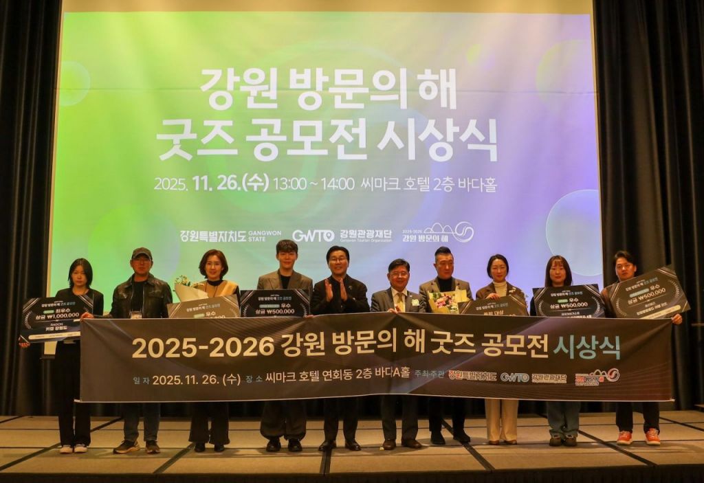 포럼 종료 후에는 지난 9~10월 강원의 매력을 담은 굿즈를 발굴하기 위해 개최한 '2025--2026 강원 방문의 해 굿즈 공모전 시상식'이 진행되었다. 강원의 특별한 매력을 담은 굿즈를 제작한 7팀이 시상대에 올랐으며, 그 중 힐링형 감성 굿즈인 '숨, 강원의 가리왕산(운기석 천연 디퓨저 세트)'이 영예의 대상을 차지했다.