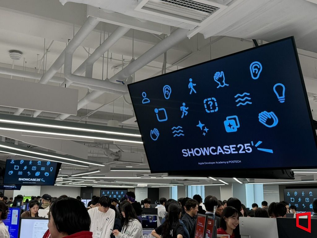 27일 오후 찾은 경북 포항시 포항공과대학교(포스텍)의 애플 디벨로퍼 아카데미. 애플이 포스텍과 함께 운영하는 이곳은 애플 생태계의 앱 개발자를 양성하는 이른바 '애플 학교'다. 선발된 교육생들은 9개월 정도의 교육을 거쳐 졸업작품 전시회 성격인 이날 쇼케이스 행사에서 직접 개발한 앱을 전시했다. 애플은 전 세계에서 18개의 아카데미를 운영하는데, 동아시아에서는 이곳 포항이 유일하다.