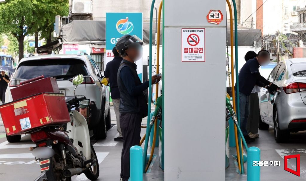 정부가 유류세 인하폭을 축소하기로 한 1일 서울 서초구 만남의 광장 알뜰주유소를 찾은 시민이 차량에 주유를 하고 있다. 이날부터 8월 31일까지 휘발유에 대한 유류세 인하율을 기존 25%에서 20%로, 경유에 대한 인하율은 37%에서 30%로 축소 적용한다. 이에 따라 휘발유의 유류세는 리터당 615원에서 656원으로 41원 오르고, 경유의 유류세도 369원에서 407원으로 38원 오르게 된다.사진=조용준 기자 jun21@