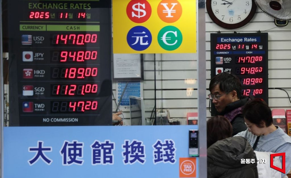 외환 시장에서 원·달러 환율이 1470원대에서 등락을 거듭하고 있는 14일 서울 중구의 한 사설환전소에 환율이 표시되고 있다. 2025.11.14 윤동주 기자