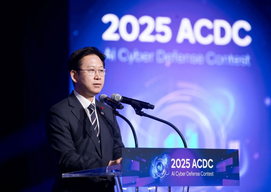 배경훈 부총리 겸 과학기술정보통신부 장관이 1일 서울 강남구 코엑스에서 열린 '2025 인공지능(AI) 해킹방어대회'에서 축사하고 있다. 과학기술정보통신부 제공
