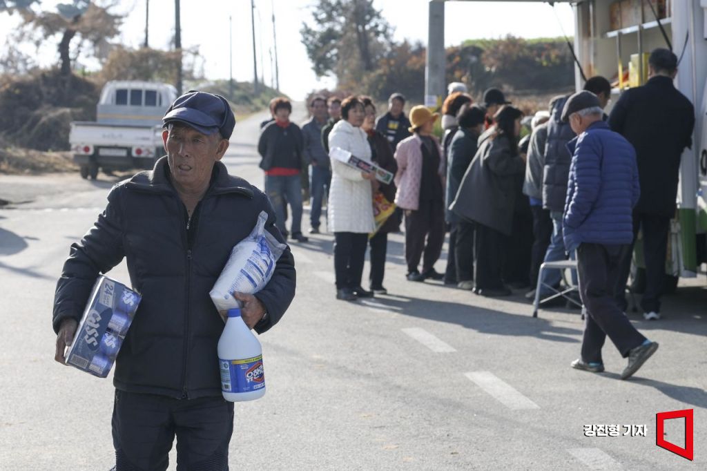 이동식 마트가 머무는 2시간 동안 마을 회관은 서른명 남짓 되는 사람들이 오가며 북적북적했다. 활동가들은 물건을 골라주고, 높은 곳에 있는 물건을 내리고 계산하면서도 주민들의 안부를 묻고 아픈 곳은 없는지 건강 상태 등을 챙겼다. 주민들 사이에서도 "이럴 때 얼굴 보지 어떻게 봐"라는 인사, "돈도 안 갖고 나왔는디"라는 말에 "내줄 테니까 나중에 갚어"라는 인심이 오갔다. 일주일에 한 번 겸사겸사 모이며 서로의 안부와 상황을 체크할 수 있는 것이다.
