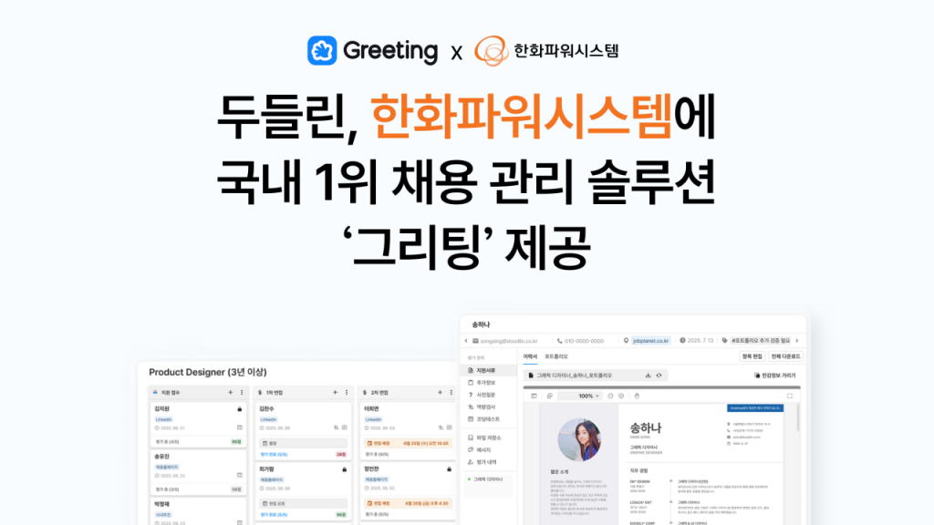 이태규 두들린 대표는 "기술 중심 기업일수록 기업의 채용 전략이 비즈니스 성과로 연결되는 경우가 많다"며 "이번 그리팅 도입이 한화파워시스템의 성장에 속도를 더하는 계기가 되길 바란다"고 했다.