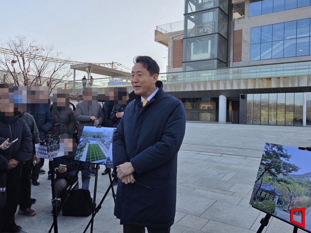 이날 오 시장은 "녹지공간은 팍팍한 도시생활에 위안과 위로를 주는 공간"이라며 "국가유산과 문화재를 보존하고 가치를 돋보이게 하는 동시에 도시를 조화롭게 발전시키고 개발하는 것은 분명히 양립 가능하다"고 밝혔다.