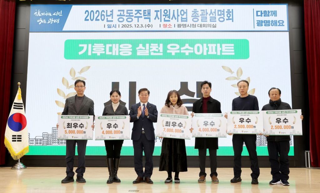 광명시는 3일 시청 대회의실에서 관내 아파트 등 공동주택을 대상으로 실시한 '기후대응 실천 우수아파트 선정 사업' 평가 결과를 발표하고 시상식을 개최했다.