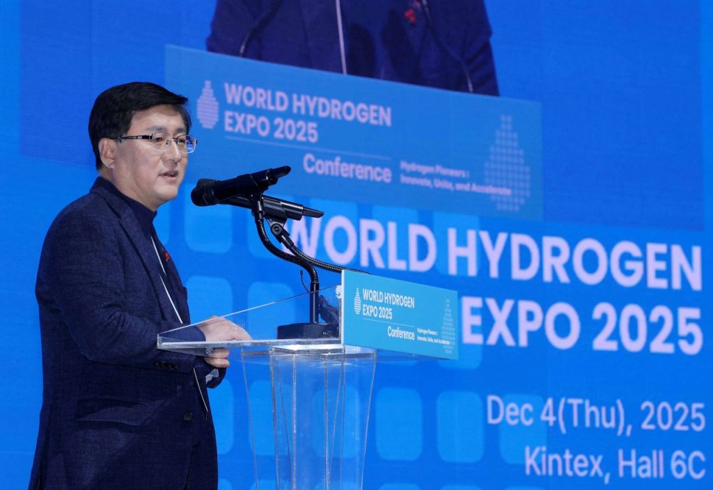 김성환 기후에너지환경부 장관이 4일 경기 고양 킨텍스에서 열린 '월드하이드로젠엑스포2025' 개막식에서 환영사를 하고 있다. 2025.12.4 월드하이드로젠엑스포조직위원회