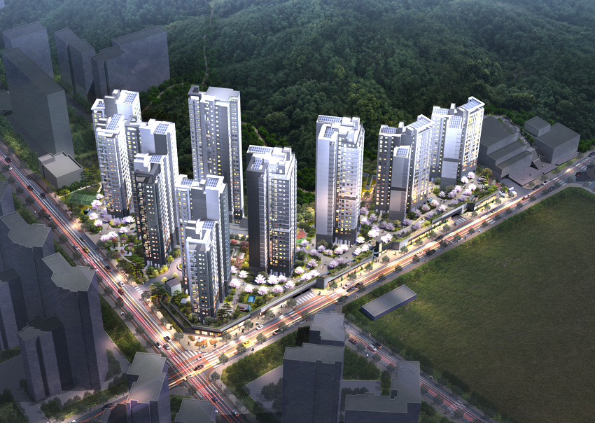 북측에는 반홍산과 봉산이 위치해 친환경 복합 도심형 주거단지로 조성된다. 경사가 있는 지형을 살려 남측 대지 하부에는 데크식 연동형으로 근린생활시설과 주민공동이용시설을 배치해 활용도를 높인다. 전면은 열린 공간과 함께 변화감 있는 벽면으로 디자인해 보행자에게 시각적 즐거움을 줄 계획이다.