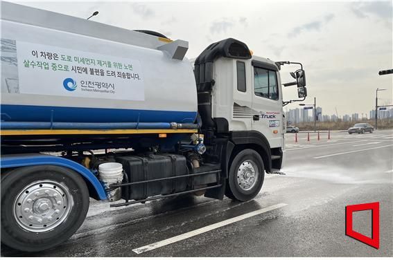 도로 미세먼지 제거를 위해 살수 작업을 하고 있다. 인천시