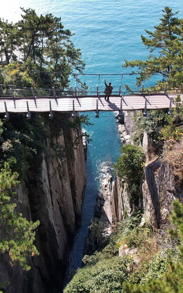 해식절벽을 이어주는 출렁다리인 '비렁다리'
