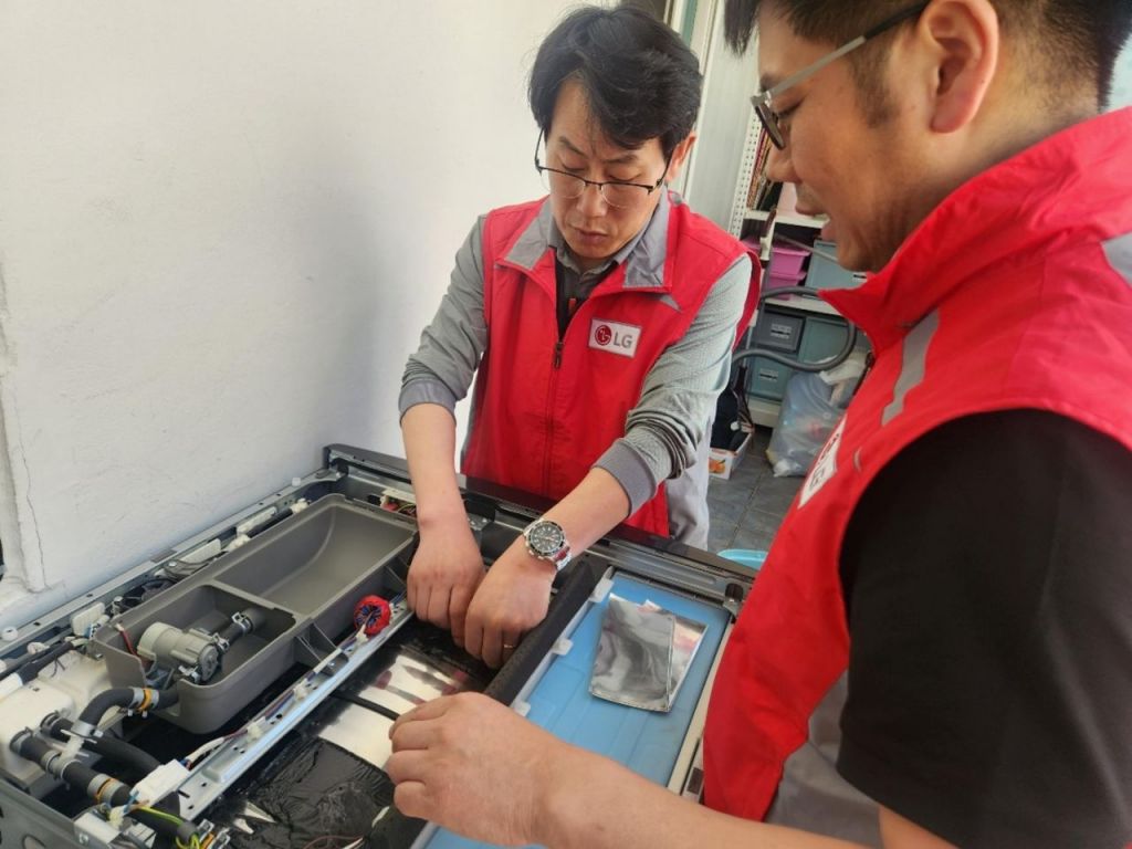 LG전자 '라이프스굿' 봉사단에는 최근 5년 간 5000여 명의 임직원이 참여해 2만3000여 명에게 도움의 손길을 전했다. 사진은 LG전자 직원들이 전문 기술 역량을 활용해 제품 점검·수리 봉사를 하는 모습. LG전자