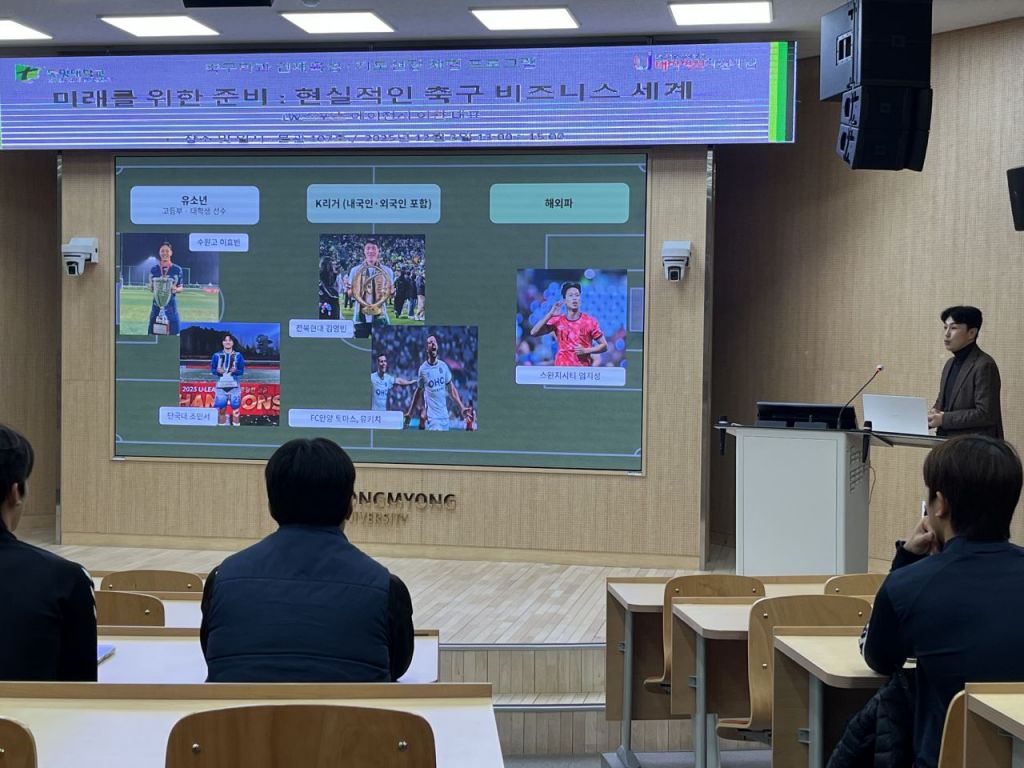 진대근 학과장은 "축구 산업의 최전선에서 뛰고 있는 전문가의 경험은 학생들에게 강력한 동기이자 성장의 발판이 된다"며 "학과는 앞으로도 산업 현장과의 협력을 강화해 학생들이 실제 현장에서 즉시 활용할 수 있는 실무 역량을 기를 수 있도록 지속 지원하겠다"고 말했다.