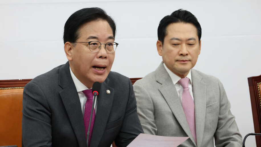 국민의힘 송언석 원내대표는 이날 사회관계망서비스(SNS) 페이스북을 통해 전 본부장의 진술 보도와 관련 "민중기 특검은 이 심각한 범죄 혐의를 알고도 덮어버렸다"며 "야당에 대해서는 밤낮을 가리지 않고 무차별 압수수색을 벌이던 특검이 민주당에 대해선 수사 의지조차 보이지 않는다"고 지적했다.