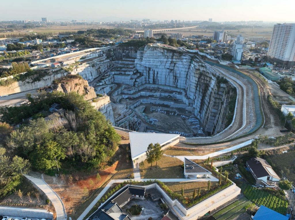 전라북도 익산시 황등면 황등석산은 화강암을 생산하기 위해 지하로 파내려 간 석산의 깊이, 수직으로 깎인 절벽의 결, 원형으로 둘러진 채석장 구조가 하나의 풍경을 이뤄 새로운 관광명소로 주목받고 있다. 사진 황등아트앤컬쳐